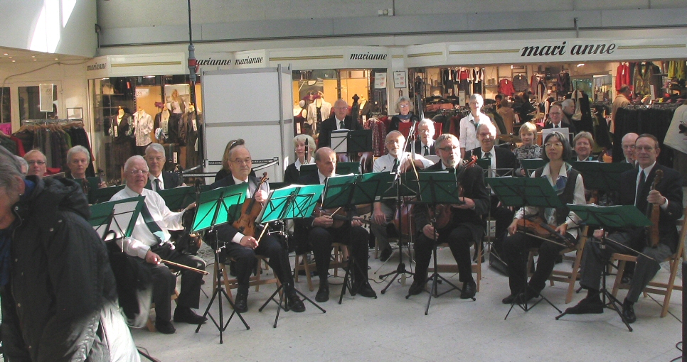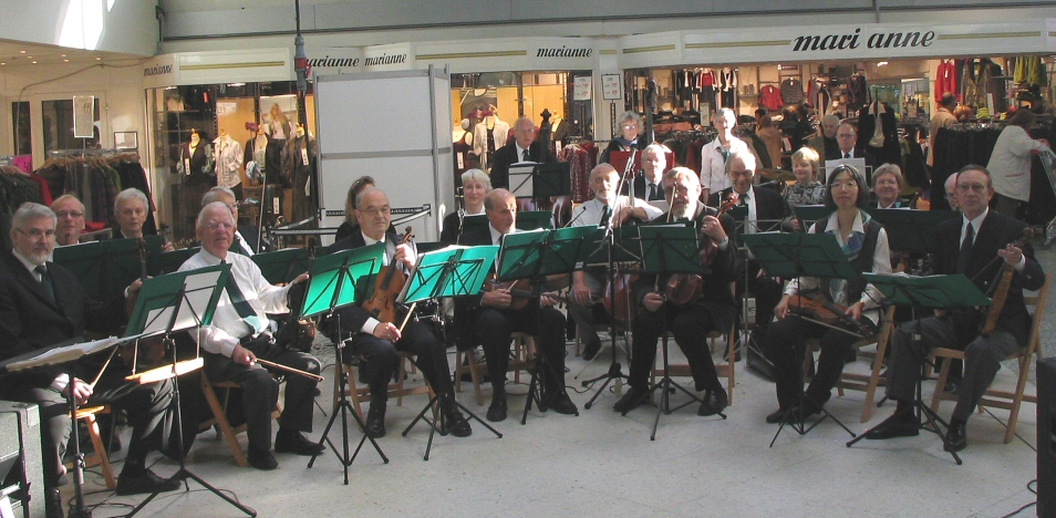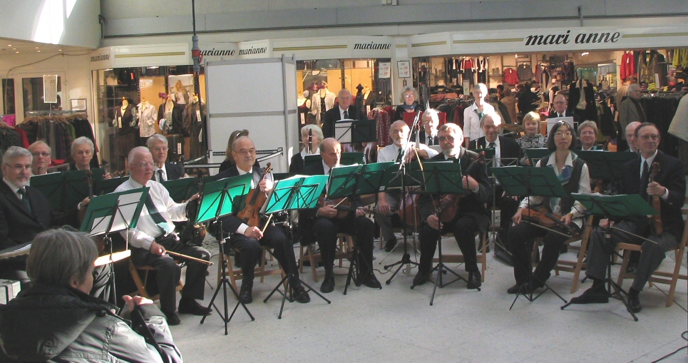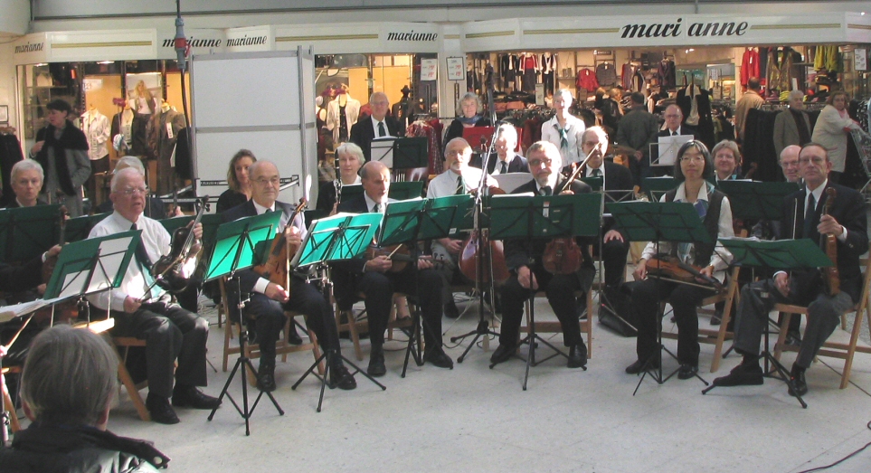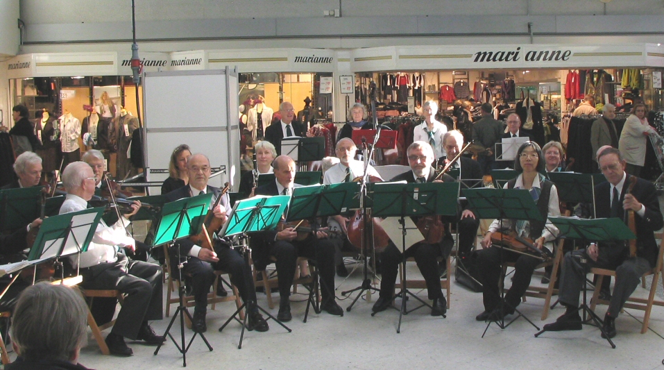 | 10-11-2007: Koncert i Tarupcentret som så mange gange før.. Bruno foreslog at tage nogle orkesterbilleder. En hjælpsom butiksmand trykkede på knappen. |